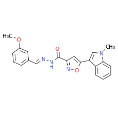 InChi: InChI=1S/C21H18N4O3/c1-25-13-17(16-8-3-4-9-19(16)25)20-11-18(24-28-20)21(26)23-22-12-14-6-5-7-15(10-14)27-2/h3-13H,1-2H3,(H,23,26)/b22-12+