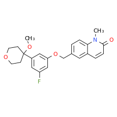 Smiles: COC1(CCOCC1)C1C=C(F)C=C(C=1)OCC1C=CC2=C(C=1)C=CC(=O)N2C