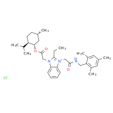Smiles: [Cl-].CC(C)[C@H]1CC[C@H](C)C[C@@H]1OC(=O)CN1C(CC)=[N+](CC(=O)NCC2C(C)=CC(C)=CC=2C)C2=CC=CC=C12