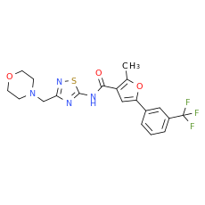Smiles: CC1OC(=CC=1C(=O)NC1=NC(CN2CCOCC2)=NS1)C1=CC(=CC=C1)C(F)(F)F