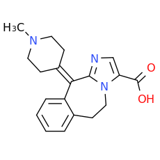 Alcaftadine carboxylic acid is a broad-spectrum antihistamine compound with high affinity for histamine H1 and H2 receptors and low affinity for H4 receptors. Alcaftadine carboxylic acid has also demonstrated effects on modulating immune cell recruitment and stabilizing mast cells. Alcaftadine carboxylic acid is more effective than placebo in preventing ocular itching associated with allergic conjunctivitis and is at least as effective as olopatadine 0.01%.