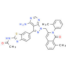 Chemical Name: N-[6-(4-amino-1-{[8-methyl-2-(2-methylphenyl)-1-oxo-1,2-dihydroisoquinolin-3-yl]methyl}-1H-pyrazolo[3,4-d]pyrimidin-3-yl)-1,3-benzothiazol-2-yl]acetamide