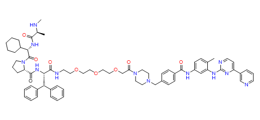 Chemical Name: 4-[(4-{2-[2-(2-{2-[(2S)-2-{[(2S)-1-[(2S)-2-cyclohexyl-2-[(2S)-2-(methylamino)propanamido]acetyl]pyrrolidin-2-yl]formamido}-3, 3-diphenylpropanamido]ethoxy}ethoxy)ethoxy]acetyl}piperazin-1-yl)methyl]-N-(4-methyl-3-{[4-(pyridin-3-yl)pyrimidin-2-yl]amino}phenyl)benzamide