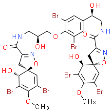 Smiles: COC1=C(Br)[C@H](O)[C@]2(CC(=NO2)C(=O)NC[C@H](O)COC2C(Br)=CC(=CC=2Br)[C@H](O)CNC(=O)C2C[C@]3(C=C(Br)C(OC)=C(Br)[C@H]3O)ON=2)C=C1Br