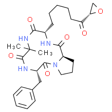 InChi: InChI=1S/C28H38N4O6/c1-28(2)27(37)30-20(16-18-10-5-3-6-11-18)26(36)32-15-9-13-21(32)25(35)29-19(24(34)31-28)12-7-4-8-14-22(33)23-17-38-23/h3,5-6,10-11,19-21,23H,4,7-9,12-17H2,1-2H3,(H,29,35)(H,30,37)(H,31,34)/t19-,20-,21+,23-/m0/s1