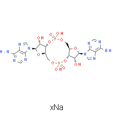 c-di-AMP (Cyclic diadenylate) sodium is a STING agonist, which binds to the transmembrane protein STING thereby activating the TBK3-IRF3 signaling pathway, subsequently triggering the production of type I IFN and TNF. c-di-AMP sodium is also a bacterial second messenger, which regulates cell growth, survival, and virulence, primarily within Gram-positive bacteria, and also regulates host immune response. c-di-AMP sodium acts as a potent mucosal adjuvant stimulating both humoral and cellular responses.