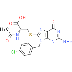 Chemical Name: (2R)-3-({2-amino-9-[(4-chlorophenyl)methyl]-6-oxo-6,9-dihydro-3H-purin-8-yl}sulfanyl)-2-acetamidopropanoic acid
