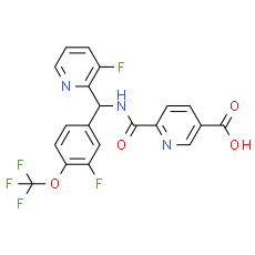 Smiles: OC(=O)C1=CN=C(C=C1)C(=O)NC(C1N=CC=CC=1F)C1=CC(F)=C(C=C1)OC(F)(F)F