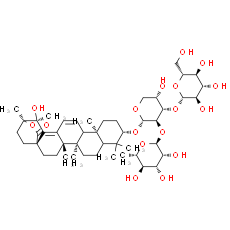 Smiles: CC1(C)C2CC[C@]3(C)C(C=CC4=C5[C@@]6(CC[C@@]34C)CC[C@](C)(OC6=O)[C@@]5(C)O)[C@@]2(C)CC[C@@H]1O[C@@H]1OC[C@H](O)[C@H](O[C@@H]2O[C@H](CO)[C@@H](O)[C@H](O)[C@H]2O)[C@H]1O[C@@H]1O[C@@H](C)[C@H](O)[C@@H](O)[C@H]1O