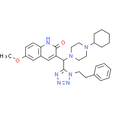 Chemical Name: 3-[(4-cyclohexylpiperazin-1-yl)[1-(2-phenylethyl)-1H-1,2,3,4-tetrazol-5-yl]methyl]-6-methoxy-1,2-dihydroquinolin-2-one