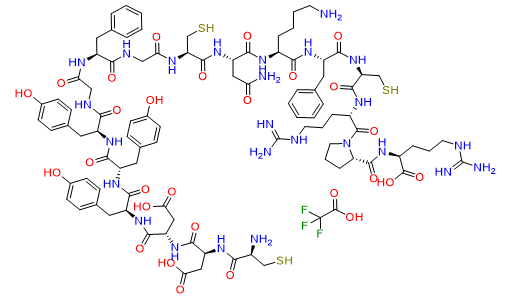 Chemical Name: (2S)-2-{[(2S)-1-[(2S)-2-[(2R)-2-[(2S)-2-[(2S)-6-amino-2-[(2S)-2-[(2R)-2-{2-[(2S)-2-{2-[(2S)-2-[(2S)-2-[(2S)-2-[(2S)-2-[(2S)-2-[(2R)-2-amino-3-sulfanylpropanamido]-3-carboxypropanamido]-3-carboxypropanamido]-3-(4-hydroxyphenyl)propanamido]-3-(4-hydroxyphenyl)propanamido]-3-(4-hydroxyphenyl)propanamido]acetamido}-3-phenylpropanamido]acetamido}-3-sulfanylpropanamido]-3-carbamoylpropanamido]hexanamido]-3-phenylpropanamido]-3-sulfanylpropanamido]-5-carbamimidamidopentanoyl]pyrrolidin-2-yl]formamido}-5-carbamimidamidopentanoic acid; trifluoroacetic acid
