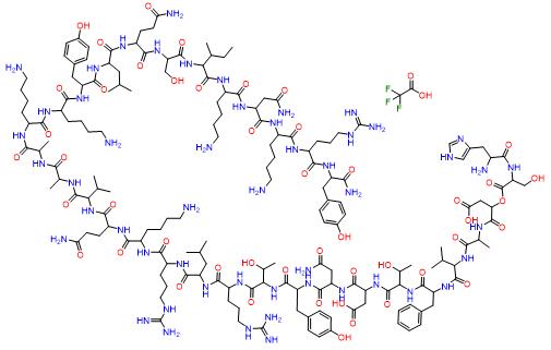 InChi: InChI=1S/C167H270N52O46.C2HF3O2/c1-16-86(10)131(162(263)201-105(39-24-29-63-172)145(246)208-117(74-125(176)229)153(254)197-103(37-22-27-61-170)140(241)196-107(41-31-65-187-166(181)182)143(244)203-111(134(178)235)69-93-43-49-97(224)50-44-93)217-159(260)122(80-221)214-147(248)109(55-57-123(174)227)200-151(252)113(68-83(4)5)205-152(253)114(71-94-45-51-98(225)52-46-94)206-144(245)104(38-23-28-62-171)195-139(240)101(35-20-25-59-168)193-136(237)88(12)190-135(236)87(11)192-160(261)129(84(6)7)216-148(249)110(56-58-124(175)228)199-141(242)102(36-21-26-60-169)194-142(243)106(40-30-64-186-165(179)180)198-150(251)112(67-82(2)3)204-146(247)108(42-32-66-188-167(183)184)202-163(264)132(90(14)222)218-156(257)115(72-95-47-53-99(226)54-48-95)207-154(255)118(75-126(177)230)209-155(256)120(77-128(233)234)212-164(265)133(91(15)223)219-157(258)116(70-92-33-18-17-19-34-92)211-161(262)130(85(8)9)215-137(238)89(13)191-149(250)119(76-127(231)232)210-158(259)121(79-220)213-138(239)100(173)73-96-78-185-81-189-96;3-2(4,5)1(6)7/h17-19,33-34,43-54,78,81-91,100-122,129-133,220-226H,16,20-32,35-42,55-77,79-80,168-173H2,1-15H3,(H2,174,227)(H2,175,228)(H2,176,229)(H2,177,230)(H2,178,235)(H,185,189)(H,190,236)(H,191,250)(H,192,261)(H,193,237)(H,194,243)(H,195,240)(H,196,241)(H,197,254)(H,198,251)(H,199,242)(H,200,252)(H,201,263)(H,202,264)(H,203,244)(H,204,247)(H,205,253)(H,206,245)(H,207,255)(H,208,246)(H,209,256)(H,210,259)(H,211,262)(H,212,265)(H,213,239)(H,214,248)(H,215,238)(H,216,249)(H,217,260)(H,218,257)(H,219,258)(H,231,232)(H,233,234)(H4,179,180,186)(H4,181,182,187)(H4,183,184,188);(H,6,7)