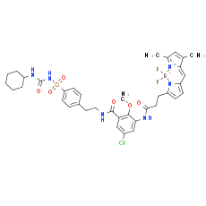 Chemical Name: 5-chloro-N-(4-(N-(cyclohexylcarbamoyl)sulfamoyl)phenethyl)-3-(3-(5, 5-difluoro-7, 9-dimethyl-5H-5l4, 6l4-dipyrrolo[1, 2-c:2', 1'-f][1, 3, 2]diazaborinin-3-yl)propanamido)-2-methoxybenzamide