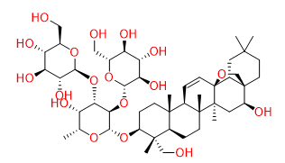 Smiles: CC1(C)C[C@H]2[C@@]34C=C[C@@H]5[C@@]6(C)CC[C@H](O[C@@H]7O[C@H](C)[C@H](O)[C@H](O[C@@H]8O[C@H](CO)[C@@H](O)[C@H](O)[C@H]8O)[C@H]7O[C@@H]7O[C@H](CO)[C@@H](O)[C@H](O)[C@H]7O)[C@@](C)(CO)[C@@H]6CC[C@@]5(C)[C@]3(C)C[C@H](O)[C@@]2(CO4)CC1