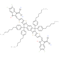 Smiles: CCCCCCC1C=CC(=CC=1)C1(C2=C(SC3C=C(/C=C4\C(=C(C#N)C#N)C5=CC(F)=C(F)C=C5C\4=O)SC=32)C2=CC3=C(C=C12)C1SC2C=C(/C=C4/C(=C(C#N)C#N)C5=CC(F)=C(F)C=C5C/4=O)SC=2C=1C3(C1C=CC(CCCCCC)=CC=1)C1C=CC(CCCCCC)=CC=1)C1C=CC(CCCCCC)=CC=1
