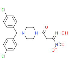 Smiles: [O-][N+](=O)/C(/CC(=O)N1CCN(CC1)C(C1C=CC(Cl)=CC=1)C1C=CC(Cl)=CC=1)=N\O