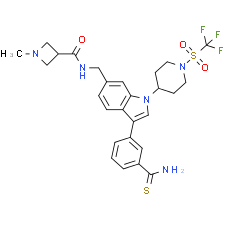Smiles: CN1CC(C1)C(=O)NCC1C=CC2=C(C=1)N(C=C2C1=CC(=CC=C1)C(N)=S)C1CCN(CC1)S(=O)(=O)C(F)(F)F