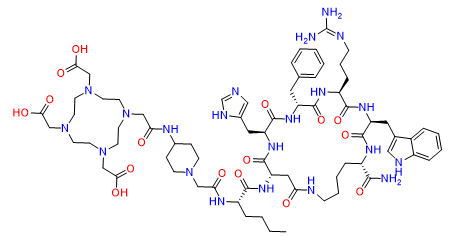 Chemical Name: 2-[4-[2-[[1-[2-[[(2S)-1-[[(3S, 6S, 9R, 12S, 15S, 23S)-9-benzyl-23-carbamoyl-6-[3-(diaminomethylideneamino)propyl]-12-(1H-imidazol-5-ylmethyl)-3-(1H-indol-3-ylmethyl)-2, 5, 8, 11, 14, 17-hexaoxo-1, 4, 7, 10, 13, 18-hexazacyclotricos-15-yl]amino]-1-oxohexan-2-yl]amino]-2-oxoethyl]piperidin-4-yl]amino]-2-oxoethyl]-7, 10-bis(carboxymethyl)-1, 4, 7, 10-tetrazacyclododec-1-yl]acetic acid