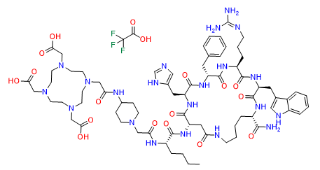 Chemical Name: 2-[4-[2-[[1-[2-[[(2S)-1-[[(3S, 6S, 9R, 12S, 15S, 23S)-9-benzyl-23-carbamoyl-6-[3-(diaminomethylideneamino)propyl]-12-(1H-imidazol-5-ylmethyl)-3-(1H-indol-3-ylmethyl)-2, 5, 8, 11, 14, 17-hexaoxo-1, 4, 7, 10, 13, 18-hexazacyclotricos-15-yl]amino]-1-oxohexan-2-yl]amino]-2-oxoethyl]piperidin-4-yl]amino]-2-oxoethyl]-7, 10-bis(carboxymethyl)-1, 4, 7, 10-tetrazacyclododec-1-yl]acetic acid;2, 2, 2-trifluoroacetic acid