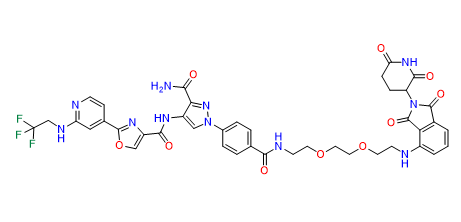 Chemical Name: N-{3-carbamoyl-1-[4-({2-[2-(2-{[2-(2, 6-dioxopiperidin-3-yl)-1, 3-dioxoisoindol-4-yl]amino}ethoxy)ethoxy]ethyl}carbamoyl)phenyl]pyrazol-4-yl}-2-{2-[(2, 2, 2-trifluoroethyl)amino]pyridin-4-yl}-1, 3-oxazole-4-carboxamide