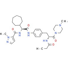 Chemical Name: N-[(2R)-3-{4-[(2S)-2-cycloheptyl-2-[(1-methyl-1H-pyrazol-5-yl)formamido]acetamido]phenyl}-1-(4-methylpiperazin-1-yl)-1-oxopropan-2-yl]propanamide