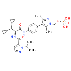 Smiles: CC(C)N1N=CC=C1C(=O)N[C@@H](C(C1CC1)C1CC1)C(=O)NC1C=CC(=CC=1)C1=C(C)N(COP(O)(O)=O)N=C1C