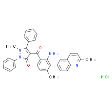 Chemical Name: 4-[2-amino-4-methyl-3-(2-methylquinolin-6-yl)benzoyl]-1-methyl-2,5-diphenyl-2,3-dihydro-1H-pyrazol-3-one hydrochloride