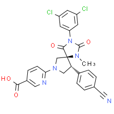 Chemical Name: 6-[(5S,9R)-9-(4-cyanophenyl)-3-(3,5-dichlorophenyl)-1-methyl-2,4-dioxo-1,3,7-triazaspiro[4.4]nonan-7-yl]pyridine-3-carboxylic acid