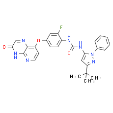 Chemical Name: 3-(3-tert-butyl-1-phenyl-1H-pyrazol-5-yl)-1-[2-fluoro-4-({3-oxo-3H,4H-pyrido[2,3-b]pyrazin-8-yl}oxy)phenyl]urea