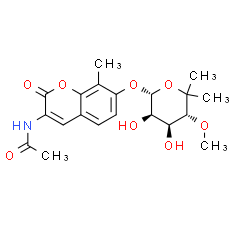 Chemical Name: N-(7-{[(2R,3R,4S,5R)-3,4-dihydroxy-5-methoxy-6,6-dimethyloxan-2-yl]oxy}-8-methyl-2-oxo-2H-chromen-3-yl)acetamide