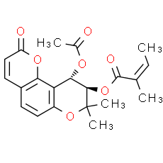 InChi: InChI=1S/C21H22O7/c1-6-11(2)20(24)27-19-18(25-12(3)22)16-14(28-21(19,4)5)9-7-13-8-10-15(23)26-17(13)16/h6-10,18-19H,1-5H3/b11-6-/t18-,19+/m0/s1