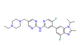 Chemical Name: 5-[(4-ethylpiperazin-1-yl)methyl]-N-{5-fluoro-4-[4-fluoro-2-methyl-1-(propan-2-yl)-1H-1,3-benzodiazol-6-yl]pyridin-2-yl}pyrimidin-2-amine