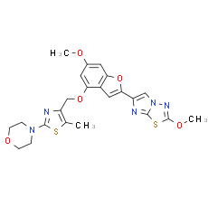 Chemical Name: 4-(4-{[(6-methoxy-2-{2-methoxyimidazo[2,1-b][1,3,4]thiadiazol-6-yl}-1-benzofuran-4-yl)oxy]methyl}-5-methyl-1,3-thiazol-2-yl)morpholine