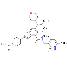 Chemical Name: N-[(4,6-dimethyl-2-oxo-1,2-dihydropyridin-3-yl)methyl]-5-ethyl-6-[ethyl(oxan-4-yl)amino]-2-[1-(propan-2-yl)piperidin-4-yl]-1-benzofuran-4-carboxamide