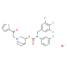 Chemical Name: (3R)-3-{[(3-fluorophenyl)[(3,4,5-trifluorophenyl)methyl]carbamoyl]oxy}-1-[2-oxo-2-(thiophen-2-yl)ethyl]-1-azabicyclo[2.2.2]octan-1-ium bromide