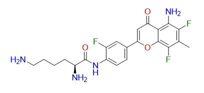 Chemical Name: (2S)-2,6-diamino-N-[4-(5-amino-6,8-difluoro-7-methyl-4-oxo-4H-chromen-2-yl)-2-fluorophenyl]hexanamide