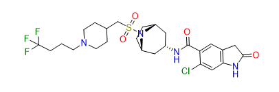 Chemical Name: 6-chloro-2-oxo-N-[(1R,3S,5S)-8-{[1-(4,4,4-trifluorobutyl)piperidin-4-yl]methanesulfonyl}-8-azabicyclo[3.2.1]octan-3-yl]-2,3-dihydro-1H-indole-5-carboxamide