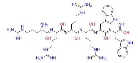 InChi: InChI=1S/C46H71N21O6/c47-29(11-5-17-57-43(49)50)38(69)63-32(14-6-18-58-44(51)52)39(70)64-33(15-7-19-59-45(53)54)40(71)65-34(16-8-20-60-46(55)56)41(72)67-36(22-26-24-62-31-13-4-2-10-28(26)31)42(73)66-35(37(48)68)21-25-23-61-30-12-3-1-9-27(25)30/h1-4,9-10,12-13,23-24,29,32-36,61-62H,5-8,11,14-22,47H2,(H2,48,68)(H,63,69)(H,64,70)(H,65,71)(H,66,73)(H,67,72)(H4,49,50,57)(H4,51,52,58)(H4,53,54,59)(H4,55,56,60)/t29-,32-,33-,34-,35-,36-/m0/s1