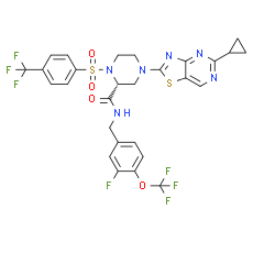 Chemical Name: (2R)-4-{5-cyclopropyl-[1,3]thiazolo[4,5-d]pyrimidin-2-yl}-N-{[3-fluoro-4-(trifluoromethoxy)phenyl]methyl}-1-[4-(trifluoromethyl)benzenesulfonyl]piperazine-2-carboxamide