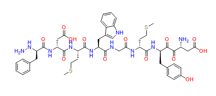 Chemical Name: (3R,6R)-3-amino-6-[(2R)-2-{2-[(2S)-2-[(2S)-2-[(2R)-3-carboxy-2-[(2R)-2-hydrazinyl-3-phenylpropanamido]propanamido]-4-(methylsulfanyl)butanamido]-3-(1H-indol-3-yl)propanamido]acetamido}-4-(methylsulfanyl)butanamido]-7-(4-hydroxyphenyl)-4,5-dioxoheptanoic acid