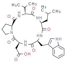 Chemical Name: 2-[(3R,6S,9S,12S,17aS)-9-[(1H-indol-3-yl)methyl]-6-(2-methylpropyl)-1,4,7,10,13-pentaoxo-3-(propan-2-yl)-hexadecahydro-1H-pyrrolo[1,2-a]1,4,7,10,13-pentaazacyclopentadecan-12-yl]acetic acid