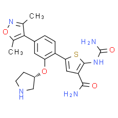 Chemical Name: 2-(carbamoylamino)-5-[4-(3,5-dimethyl-1,2-oxazol-4-yl)-2-[(3S)-pyrrolidin-3-yloxy]phenyl]thiophene-3-carboxamide