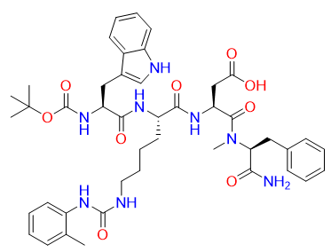Chemical Name: (3S)-3-[(2S)-2-[(2S)-2-{[(tert-butoxy)carbonyl]amino}-3-(1H-indol-3-yl)propanamido]-6-{[(2-methylphenyl)carbamoyl]amino}hexanamido]-3-{[(1S)-1-carbamoyl-2-phenylethyl](methyl)carbamoyl}propanoic acid
