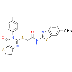 Chemical Name: 2-{[3-(4-fluorophenyl)-4-oxo-3H,4H,6H,7H-thieno[3,2-d]pyrimidin-2-yl]sulfanyl}-N-(6-methyl-1,3-benzothiazol-2-yl)acetamide