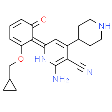 Chemical Name: 2-amino-6-[(1E)-2-(cyclopropylmethoxy)-6-oxocyclohexa-2,4-dien-1-ylidene]-4-(piperidin-4-yl)-1,6-dihydropyridine-3-carbonitrile