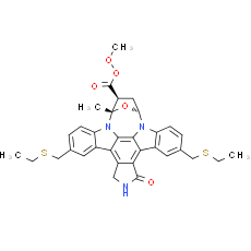 Smiles: COOC(=O)[C@H]1C[C@@H]2O[C@]1(C)N1C3C(C4=CC(CSCC)=CC=C14)=C1CNC(=O)C1=C1C=3N2C2C=CC(CSCC)=CC=21