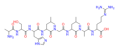 Chemical Name: 2-(2-{2-[2-(2-{2-[2-(2-aminopropanamido)-3-hydroxypropanamido]-3-(1H-imidazol-5-yl)propanamido}-4-methylpentanamido)acetamido]-4-methylpentanamido}propanamido)-5-[(diaminomethylidene)amino]pentanoic acid