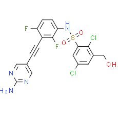 Smiles: NC1N=CC(=CN=1)C#CC1=C(F)C(=CC=C1F)NS(=O)(=O)C1=CC(Cl)=CC(CO)=C1Cl