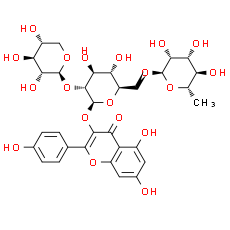 Chemical Name: 3-{[(2S,3R,4S,5S,6R)-4,5-dihydroxy-6-({[(2R,3R,4R,5R,6S)-3,4,5-trihydroxy-6-methyloxan-2-yl]oxy}methyl)-3-{[(2S,3R,4S,5R)-3,4,5-trihydroxyoxan-2-yl]oxy}oxan-2-yl]oxy}-5,7-dihydroxy-2-(4-hydroxyphenyl)-4H-chromen-4-one