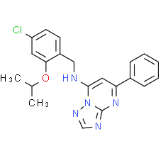 Smiles: CC(C)OC1=CC(Cl)=CC=C1CNC1=CC(=NC2=NC=NN12)C1C=CC=CC=1